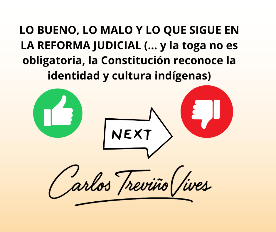 LO BUENO, LO MALO Y LO QUE SIGUE EN LA REFORMA JUDICIAL (… y la toga no es obligatoria, la Constitución reconoce la identidad y cultura indígenas)