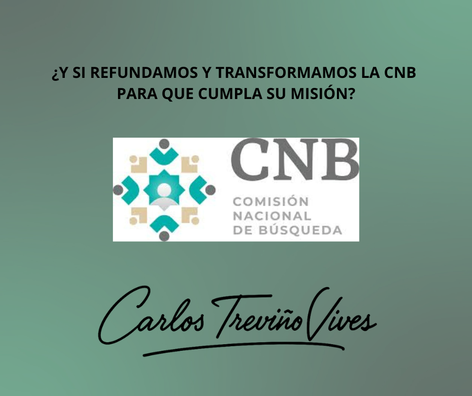 Refundar la CNB significa honrar la memoria de quienes siguen ausentes y la resistencia de las personas que siguen buscando. Significa también transformar el dolor en acción, la burocracia en búsqueda efectiva, y las promesas en resultados. Hoy se tiene la oportunidad de demostrar que es posible construir instituciones que respondan con dignidad a una de las crisis humanitarias más profundas de nuestra historia. Dejo esta propuesta como aportación para el diálogo esperando pueda ser retomada por el nuevo equipo directivo y los planteamientos aquí señalados sean útiles para la transformación que la CNB requiere. La refundación de la CNB no puede esperar más, cada persona desaparecida importa y cada familia merece respuestas.